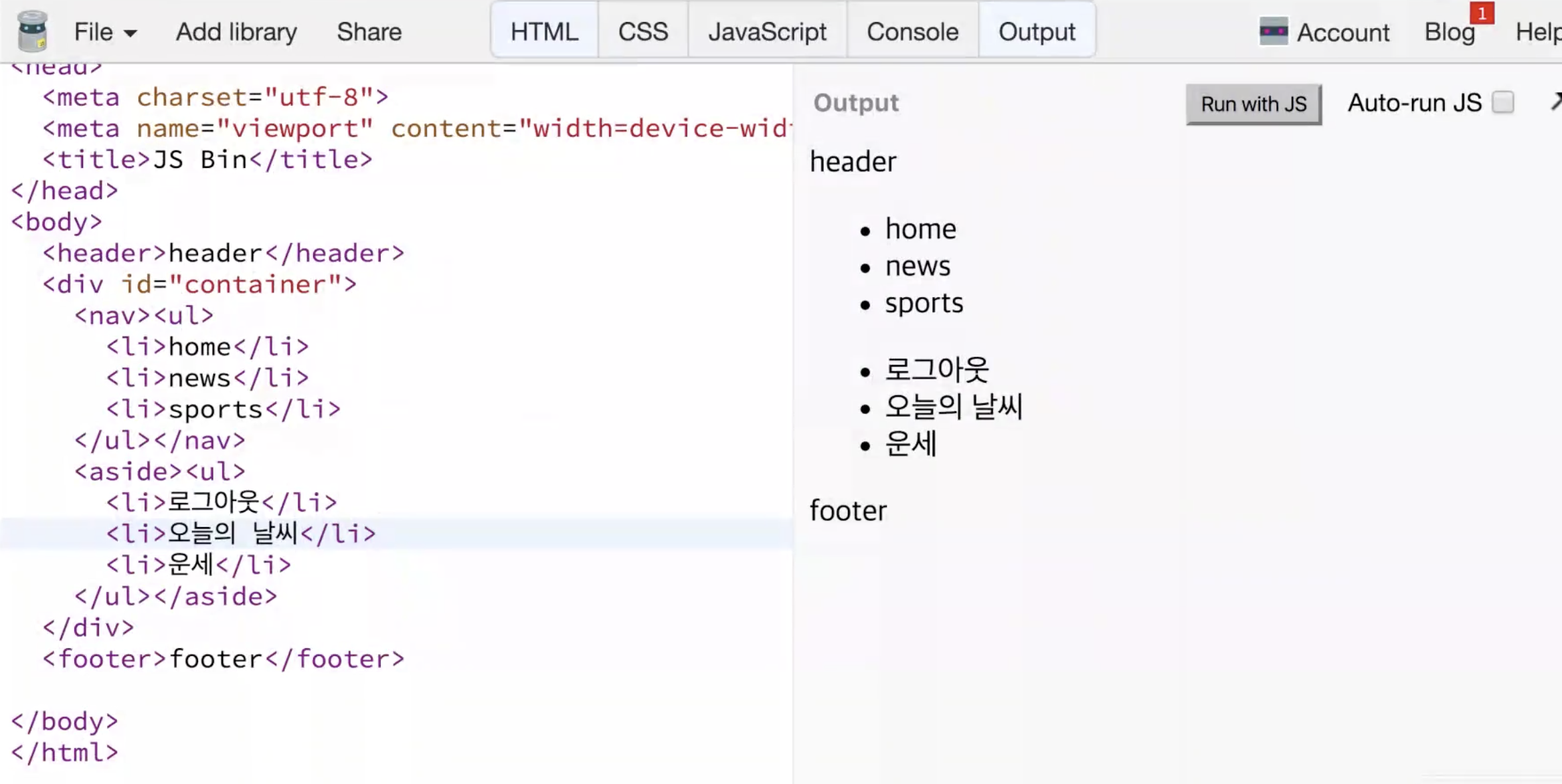 - ul, li: list를 나타낼 때